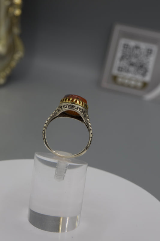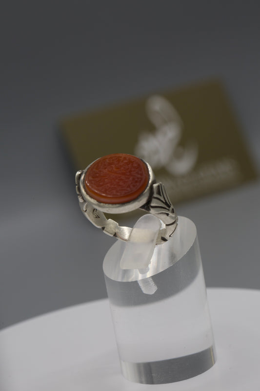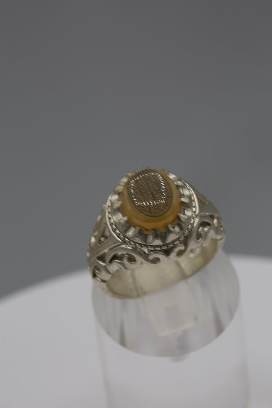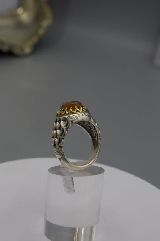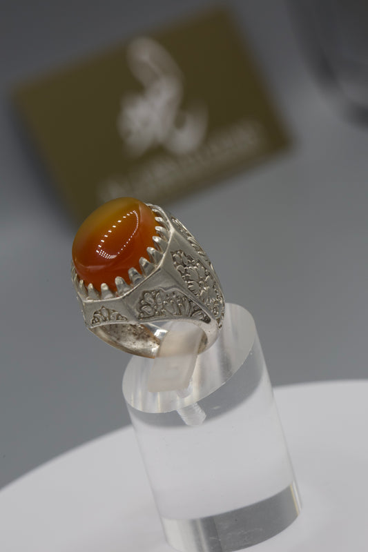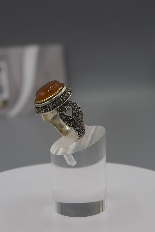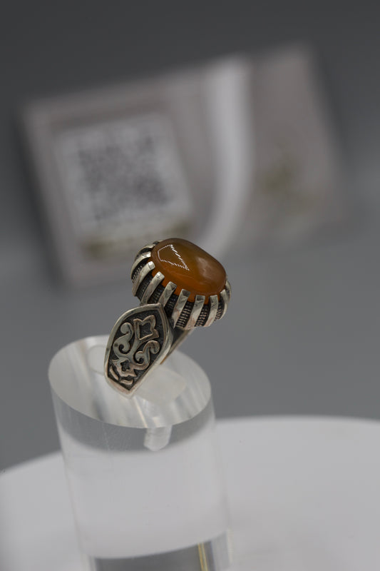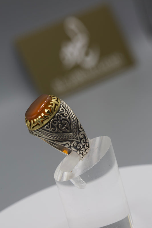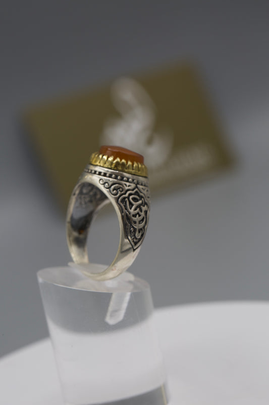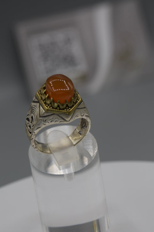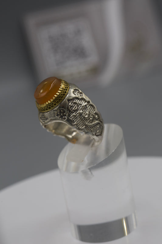 Aqeeq Yemeni Ring - Silver laser work