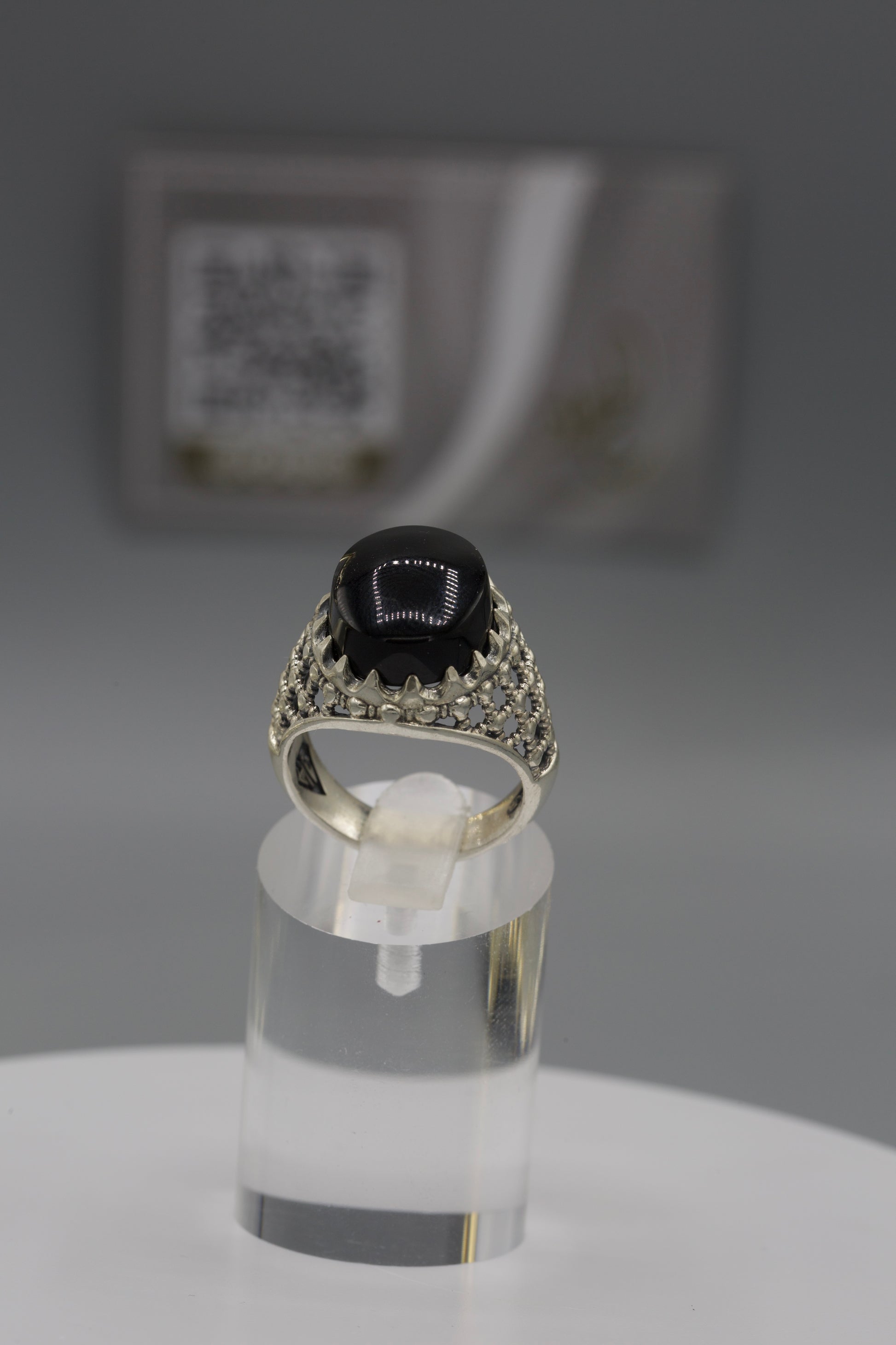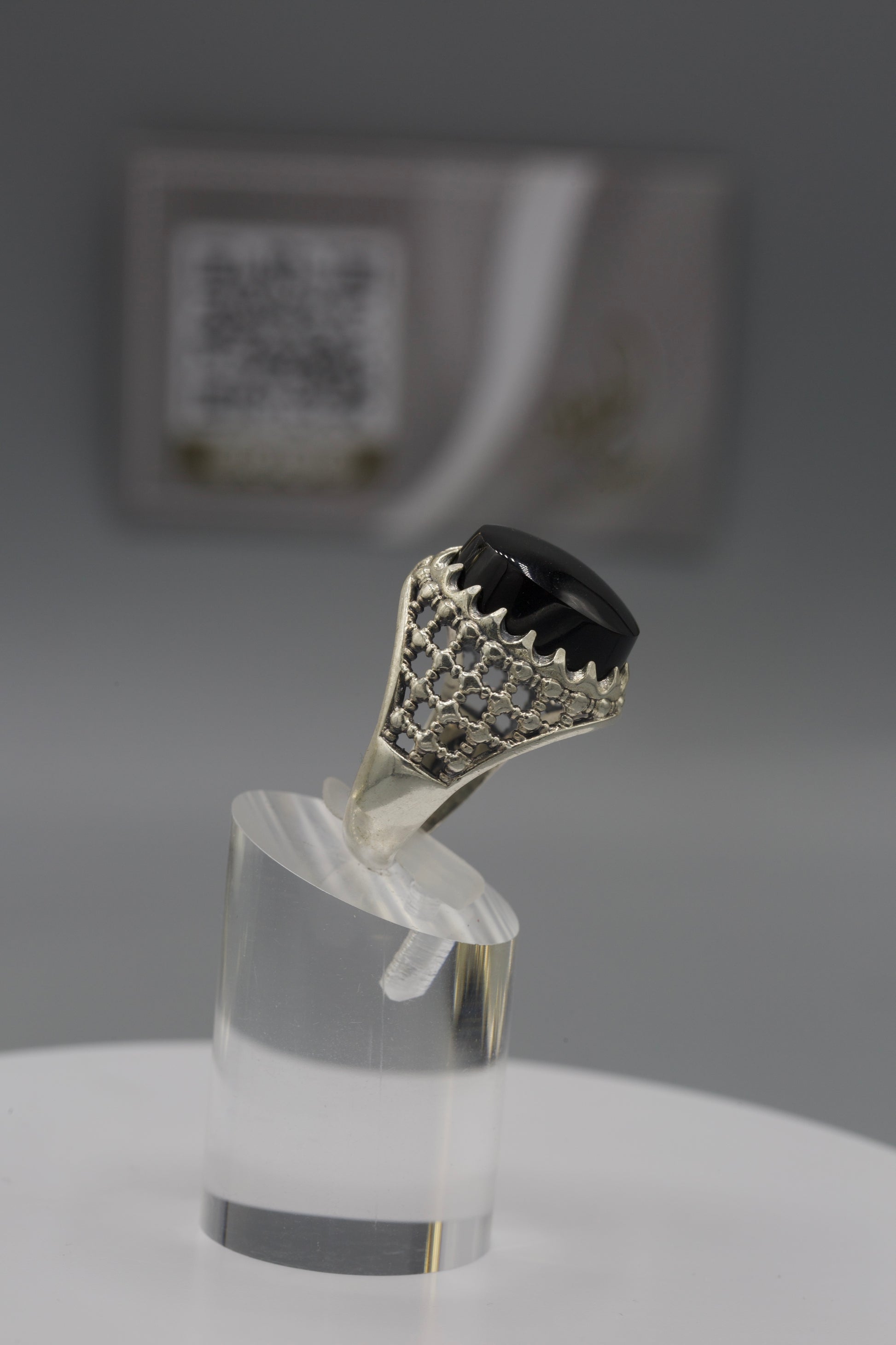Black Aqeeq Dhareeh Silver Men’s Ring