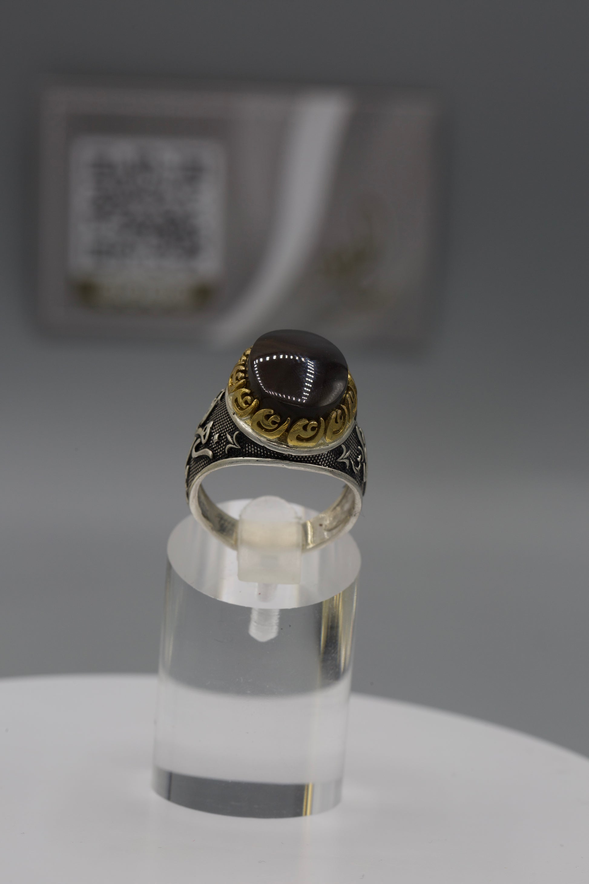 Black Aqeeq ‘ya Zahra’ Silver Men’s Ring